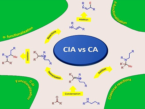 Iminium and azonium-activated metal and oxidant-free C–H functionalization of aliphatic amines
